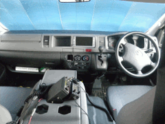 ←シールを貼ったり無線のアンテナ を付けている程度なので見た目は 普通のハイエース |