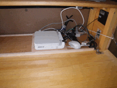 ↑インバータと照明のスイッチ ←サイドボード内に設置したPC本体 ↓キッチンの扉を再利用して製作した 引き出し その下は電子レンジ |