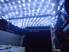 →天井を覆う星空のような照明 クリスマス飾りのネット状のLEDを 天井に取り付けた ↓テレビ兼PC用ディスプレー |