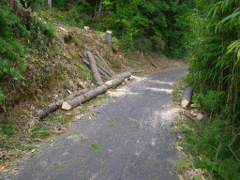 杭は直径20cm程度で長さは3メートル程のものが必要とのことでした。葡萄薗予定地付近の山林を伐採すれば何とかなりそうです。