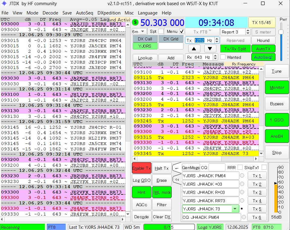今日も野良仕事を終えて、入浴、食事を済ませてホッとして、パソコンを起動してDXscapeを見ると6mにYJ0RSが出ているという情報をキャッチしました。ここんところ農作業に追われてアマチュア無線活動は休止中でしたので、無線小屋に行って久しぶりに無線機のスイッチを入れて呼び始めました。なかなか応答がありませんでしたが、暫くして漸く応答があり無事QSOできました。