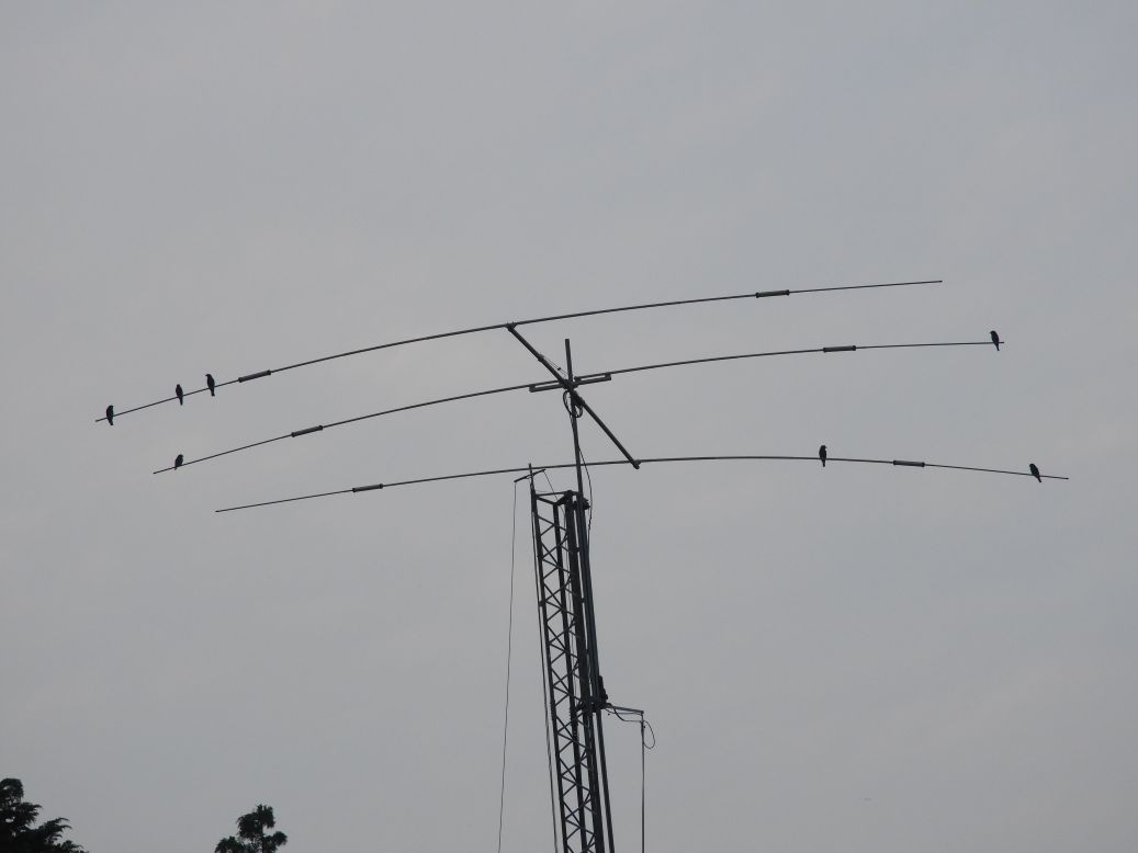 私のブドウ園の近くにも巣箱があり、巣立ちは何時なのか気をもんで見守っていました。今朝、私のアマチュア無線用のアンテナを見ると、なんと7羽ものブッポウソウが止まっているではありませんか!(アンテナは止まり木ではないぞぉ!(# ゚Д゚)