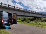 昨日の夜はそれほど暑くなかったのでドアを開放しただけでぐっすり休めましたが、どういうわけか 今日はものすごく暑いので、車のエンジンをかけてクーラーで車内を冷やしています。皆帰った為、ここ飯島の休憩小屋周辺には、私の車だけなので迷惑にはならないでしょう。