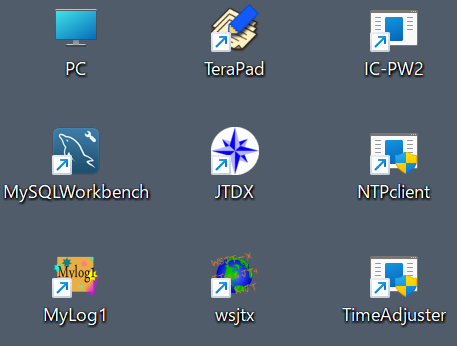 FT8を運用できるように、最新版のWSJT-XとJTDXをインストールしました。JTDXではIC-7760はサポートされていなかったので、IC-7760側でCIVアドレスをIC-7851のデフォルトアドレスに設定しました。その他、IC-PW2遠隔操作するアプリや、時刻を修正するアプリなどもインストールしました。これで、本宅から無線小屋内に設置したIC-7760本体とIC-PW2をリモートコントロールできるようになりました。4基のローテーターと2つのアンテナ切替スイッチのリモートコントロールが、今後の製作課題です。