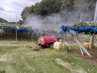 農業日誌 防除⑩ 今年最後の防除作業をしました。防除暦では10月中旬となっていますが、雨の日が続いて地面が軟らかかったので延期しました。オリオン40水和剤1000倍の薬液を400リットル調整して、SSで散布しました。SSを使うのも今年最後なので、作業後、洗車... 2025.10.21 農業日誌
