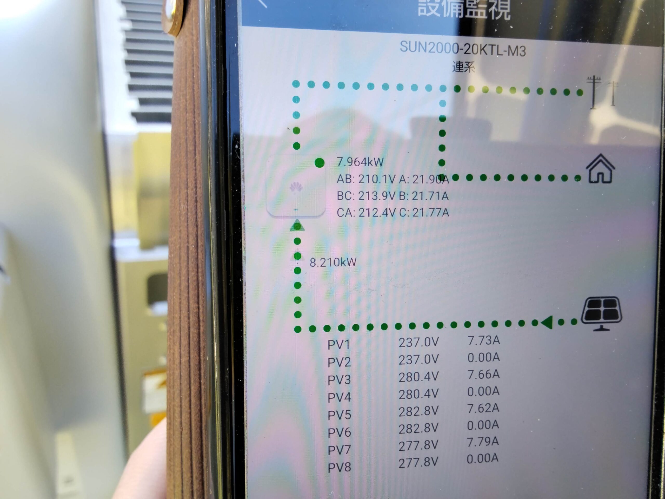 HUAWEIのパワコンは出力 20kW なので、現在運転中の 新電元 のパワコンが故障したら、それに接続されているソーラーパネルを全部HUAWEIに繋ぎ替える予定です。HUAWEIの入力は8系統迄接続可能ですが、現在は4系統しか接続していません。