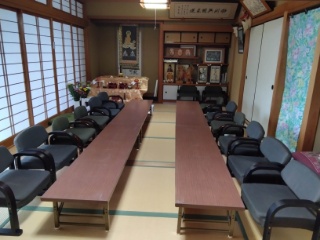 今日は亡き父の3回忌の法事でした。机と椅子は、地区の公会堂から借りてきました。以前から予定していた行事を終えてホッとしています。