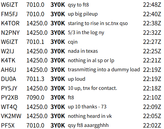昨夜(現地は昼間)の時点でDXクラスターをチェックするとパイレーツと思われるスポットばかりでしたが、今朝、朝食後に再びDXクラスターをチェックすると、世界中から沢山のスポットがありました。中には「聞こえん!」というのもありますが、どうやらQRVを開始したようです。そうでなくても激しいパイルアップが予想されるので、最初の内は静観しているつもりです。まさか3日で撤収なんてことは無い筈なので、のんびりとDXハンティングを愉しみたいと思います。