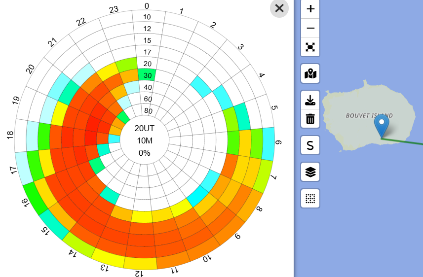 VOACAPを使って伝播予測を調べました。ショートパスでは、ハイバンドは夕方、ローバンドは早朝が良いみたいです。これを見ると、ひょっとしたら160mでもQSOできるかもしれません。コンファーム済みなのは3バンドだけなので、6バンドでのニュー獲得目指して頑張ろう!