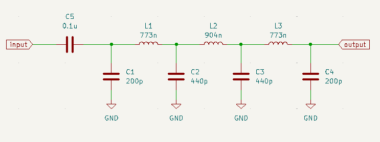 LPFは、手持ちのコンデンサの値の制約から記事の値とは異なりますが、ELSIE(フィルター設計ツール)を用いて、概ねLPFとして機能することは確認できています。